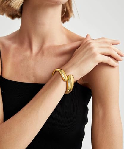 • 14K GOLD PLATED CUFFS: This wide chunky bangles bracelet set is high polished, with smooth surface and comfortable to wear. These Bangles crafted great electroplate workmanship with 14k gold plating, ensure a permanent gold color that won't tarnish over time. Hypoallergenic chunky gold jewelry, Lead free and Nickel free, friendly to sensitive skin
