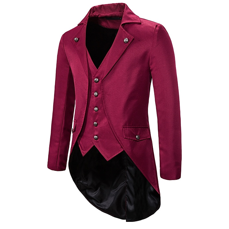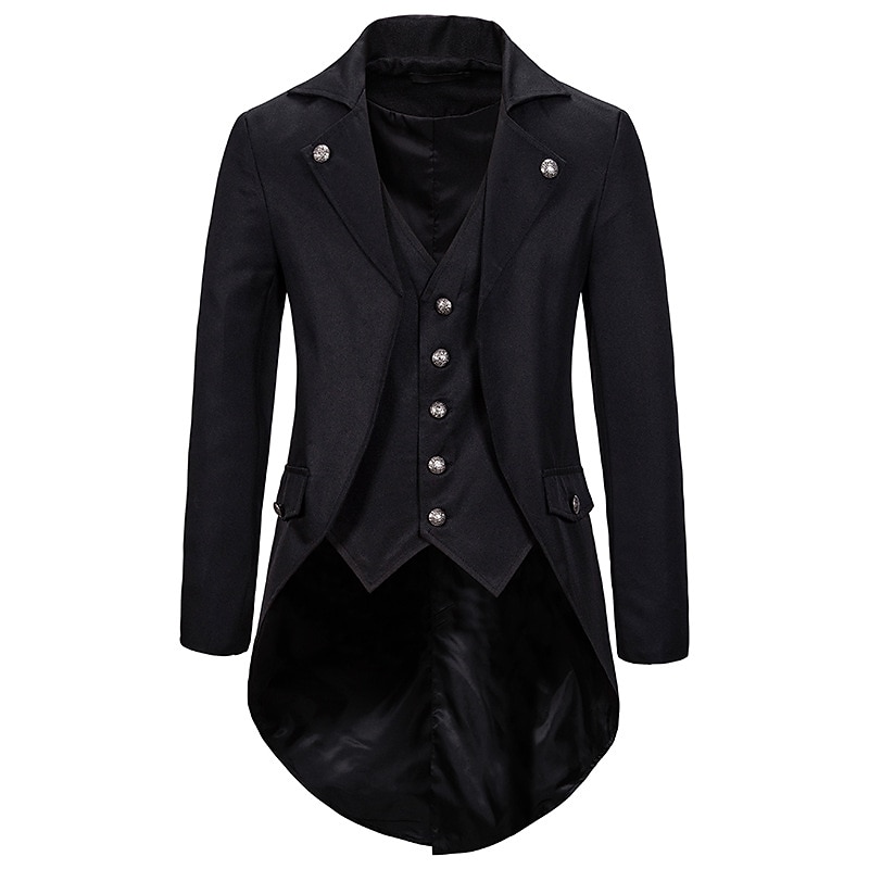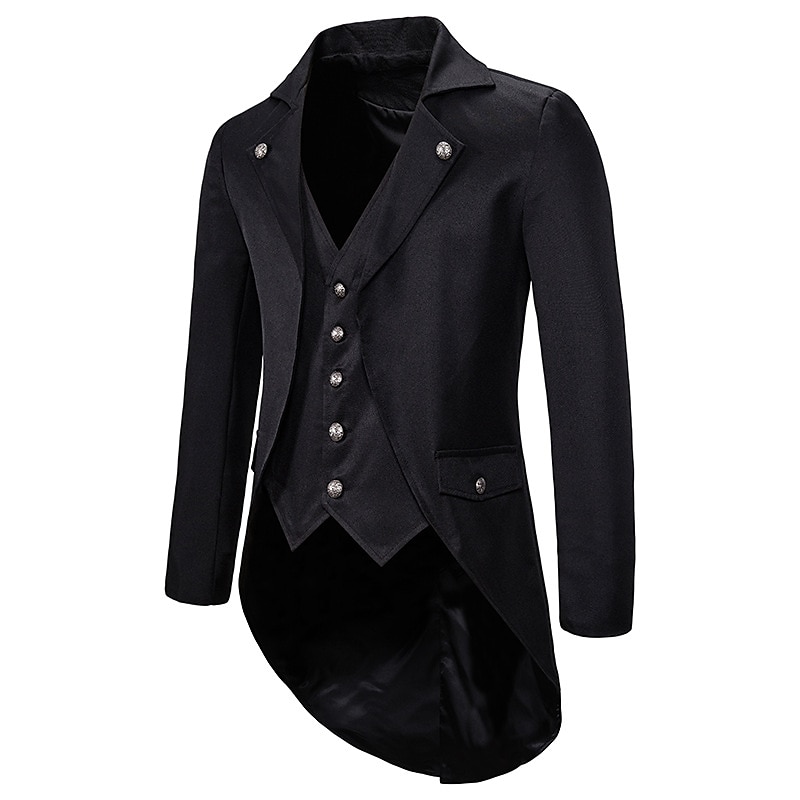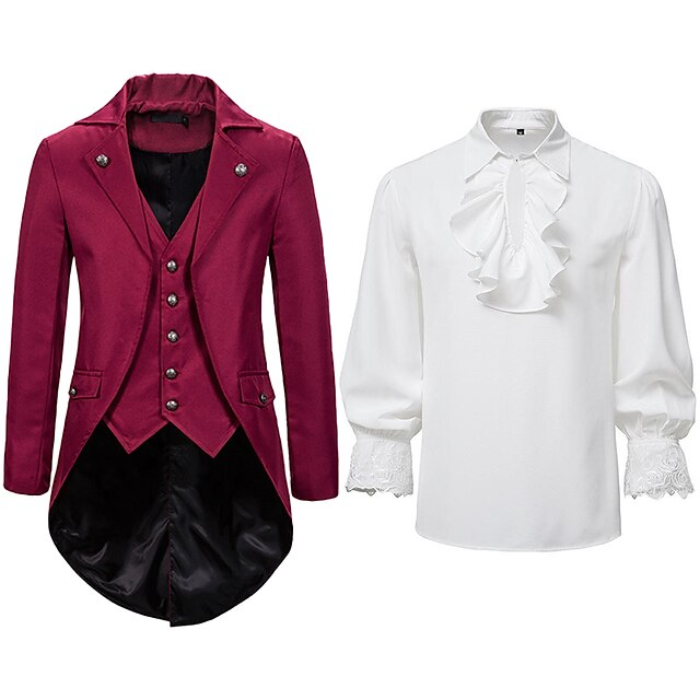 More information about Set with Tailcoat Tuxedo Coat Pirate Ruffle Shirts 2 PCS Men's Punk Gothic Medieval Steampunk 18th Century Outfits Tuxedo Trench Coat Men's Carnival Event Party Vampire Cosplay Costume
