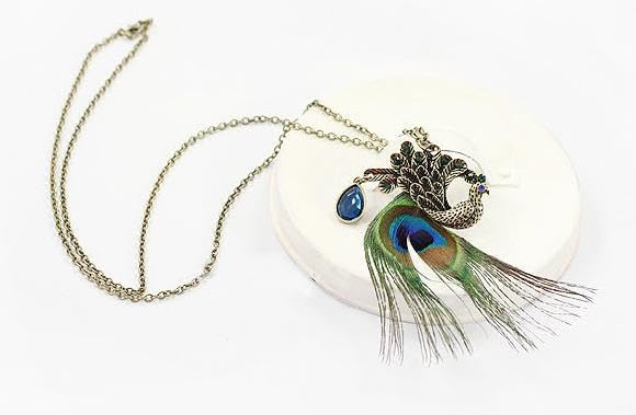 • Material: Peacock feather necklace pendant small version. Peacock eye of the feather is beautifully handmade from feather ,alloy and crystal