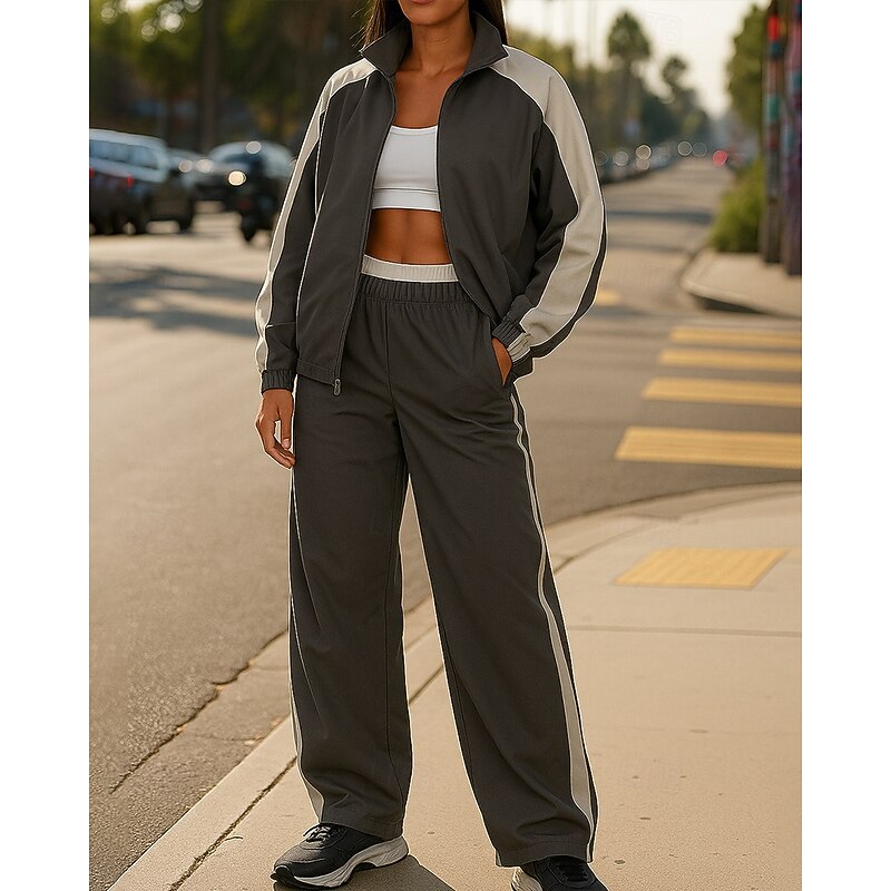 $47.99 - Women's Tracksuit Sweatpants Hooded Jacket Drawstring Hooded Color Block Clothing Suit Spring Black White Gym Training Running Windproof Long Sleeve Sport Activewear Micro-elastic Loose Fit 2025. Shop for cheap Tracksuits online? Buy at lightinthebox.com on sale today!
