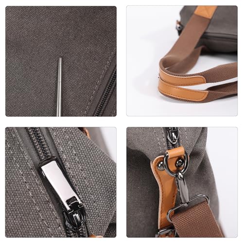 • MATERIAL -- Crafted from superior 16 oz washed canvas, lightweight yet durable. Gunmetal hardware and brown-white striped lining add a touch of elegance.