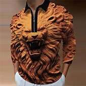 More information about Men's Zip Polo Shirts Golf Shirt Long Sleeve Polo Shirts Collared Shirts Casual Funny Vacation Wear Party Outfits 3D Print Quarter Zip Polo Fall & Winter Orange Gray