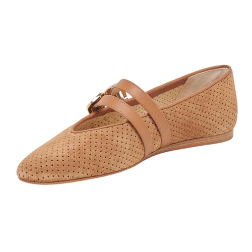 UBWDU Suede Mary Jane Flats for Women Perforated Round Toe Ballet Flats Comfortable Ballerina Shoes with Double Buckle Strap 6