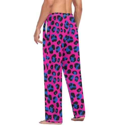 HOT ! Vdsrup Men's Pajama Pants Blue Leopard Print Pajama Pants for Men PJs Bottoms Drawstring Pockets Pink Sleep Lounge Pants S