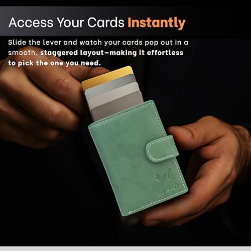 • Slim & Smart Bifold Design – Crafted for style and convenience, this slim wallet fits comfortably in your front or back pocket. The pop-up card holder mechanism offers easy access to your most-used cards, while maintaining a minimalist and professional look.