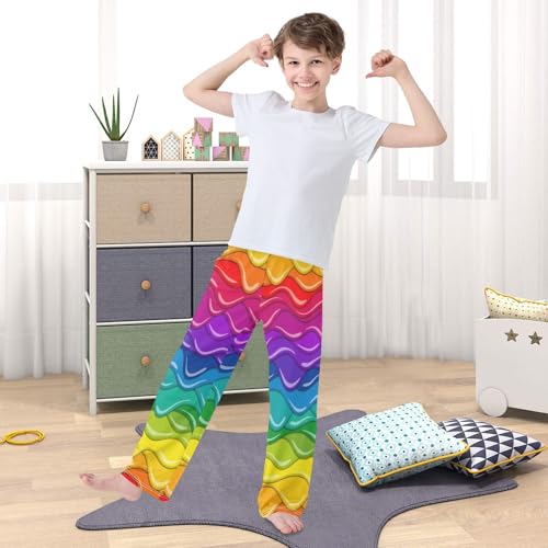 Rainbow Glaze Boys Pants Boys Athletic Pants Long Pant for Boywith Pockets Wide-Leg Size 6-14Y 7