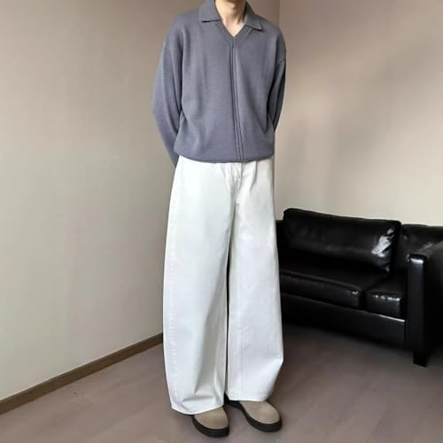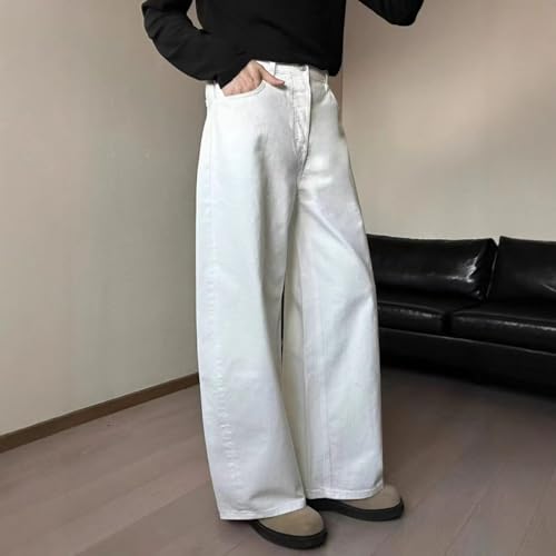 More information about Jeans Pants Trousers Denim White Loose Wide Trendy Street High Waisted Non Elastic Casual Commuting Straight Leg for Men