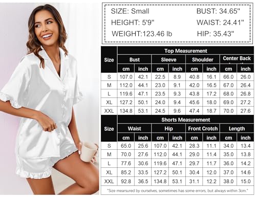 Ekouaer Womens Satin Pajamas Set Button Down Silk 2 Piece Pj Sets Ruffle Short Sleeve Sleepwear 5