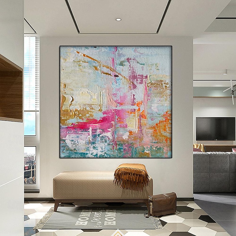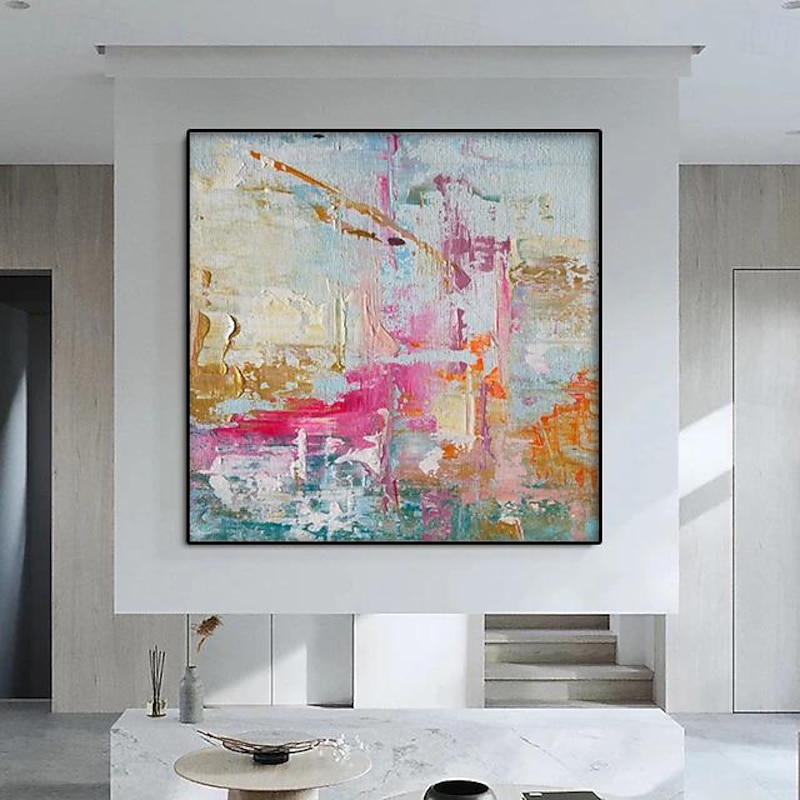 $108.99 - Vibrant Painting hand painted Abstract Painting pink Painting Canvas Painting Handmade Painting Large pattle knife Oil Painting Home Decor Wall Art painting 2025. Shop for cheap Abstract Paintings online? Buy at lightinthebox.com on sale today!