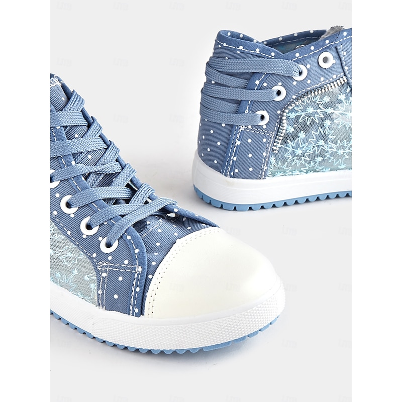 Women's Blue Lace-Up High-Top Canvas Sneakers with Embroidered Mesh Panels, Polka Dot Design for Casual and Outdoor Wear 1