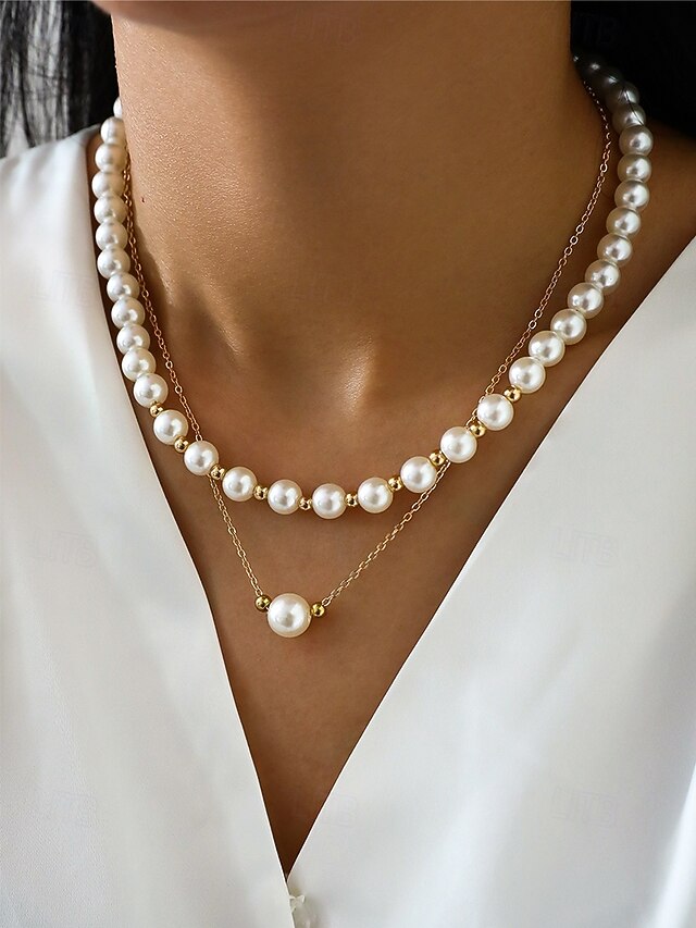 $7.99 - Elegant Layered Pearl Necklace for Women – Gold Chain with White Simulated Pearls, Classic Vintage Jewelry for Weddings, Parties and Formal Events 2025. Shop for cheap Women's Necklace online? Buy at lightinthebox.com on sale today!