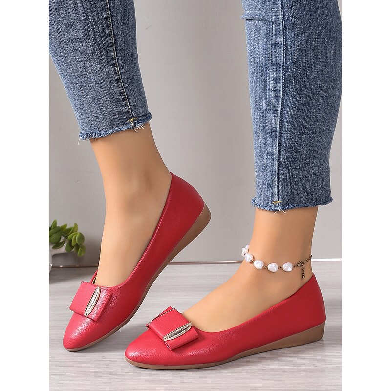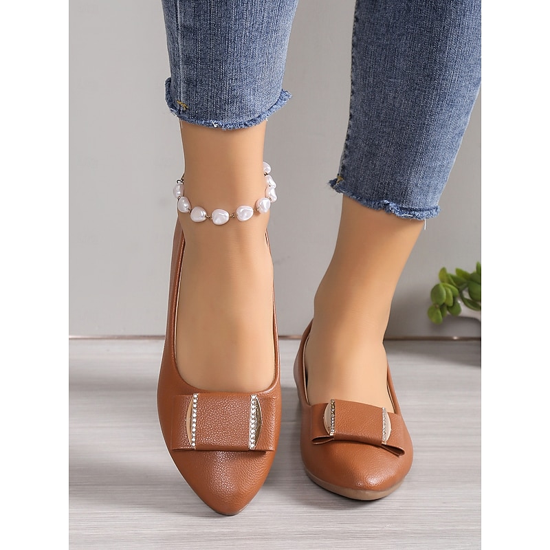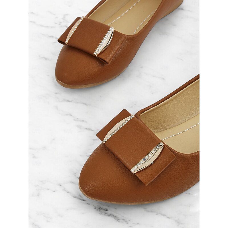 Women's Brown Faux Leather Pointed-Toe Flats with Bow and Rhinestone Detailing - Casual and Office Wear Shoes 24