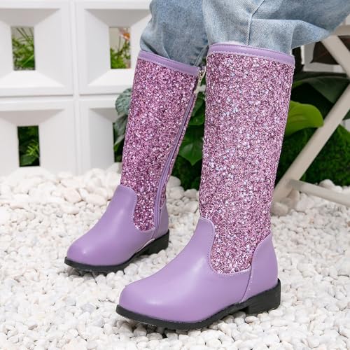 IWIHMIV Girls Long Boots Pull On Boots Round Toe Comfortable Soft Sole Mid Calf Plus Velvet Warm Booties for Kid 5