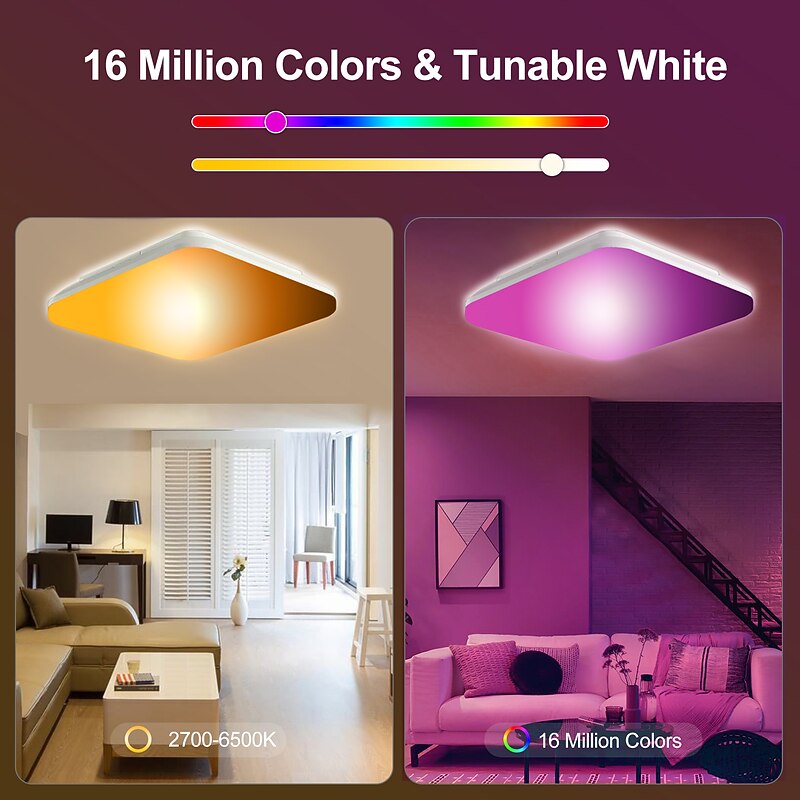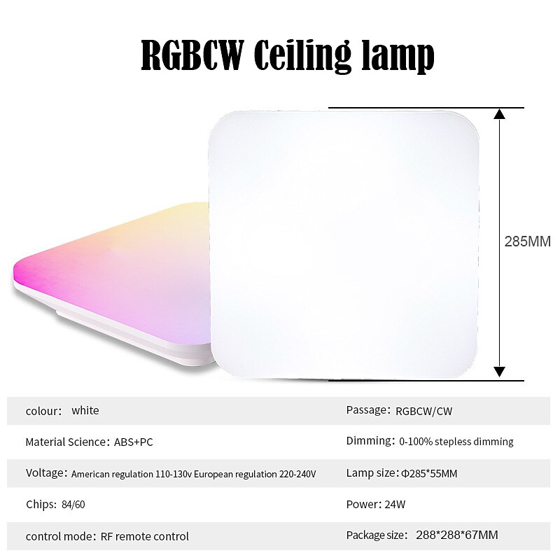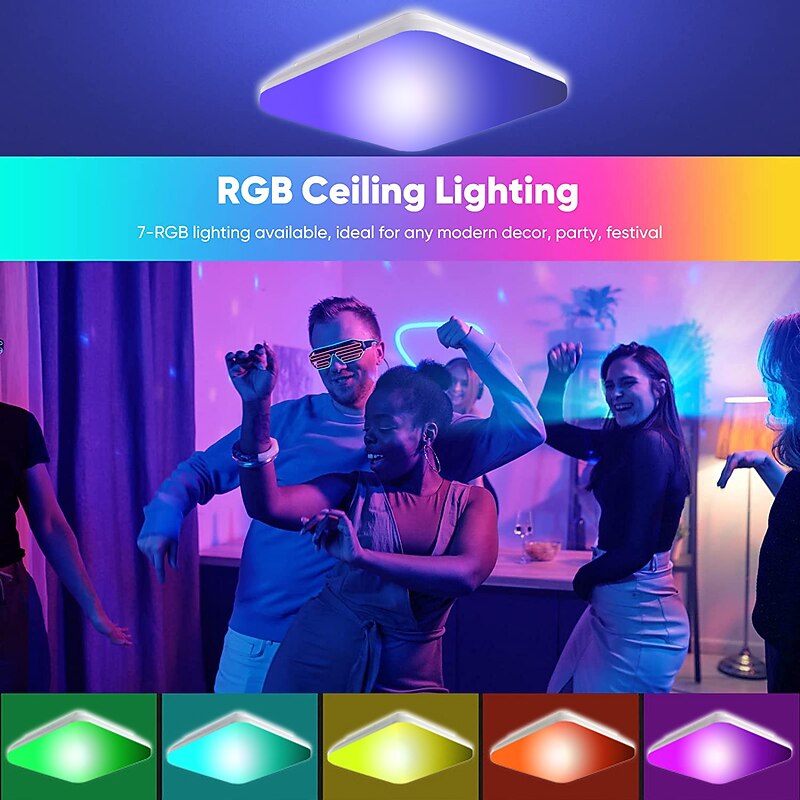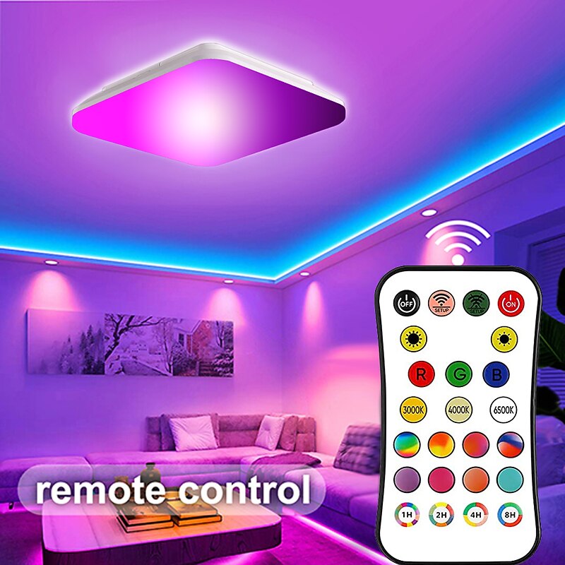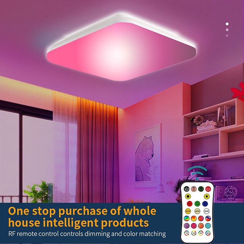 More information about Wireless Remote Control RGBCW Full Color Temperature LED Ceiling Lamp 11 inch 24W Square Dimming and Color Matching Regular Home Lighting Holiday Decoration Atmosphere Ceiling Lamp AC110V / AC220V