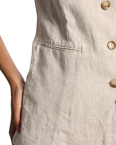 • Features: This linen vest features a V-neck design, sleeveless style, mid-length to the waist, single-row buttons, and double front pockets. These design elements together create a simple yet fashionable look, offering both versatility and a chic silhouette for various occasions
