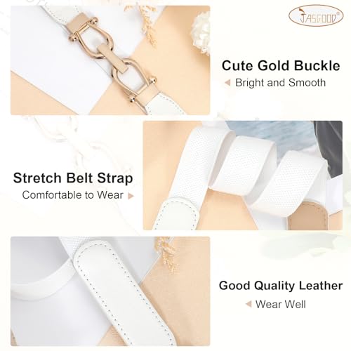 JASGOOD 2 Pack Women Thin Skinny Waist Belt for Women Elastic Stretch White Belt for Dress Pants 1