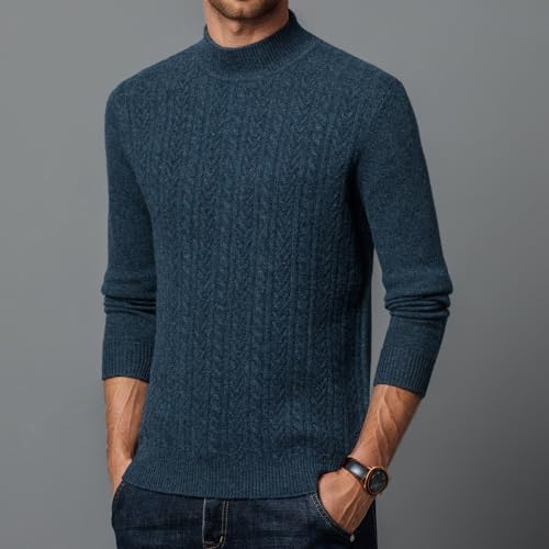 More information about Men's 100% Wool Mock Turtleneck Sweater Casual Knitted Cable Pullover Solid Thermal Sweaters