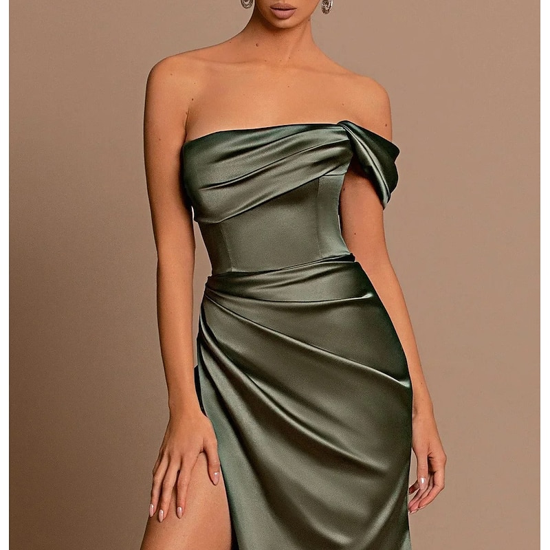 More information about Beach Wedding Mermaid Evening Gown Sexy Dress Wedding Guest Holiday Court Train Sleeveless Off Shoulder Bridesmaid Dress Satin with Ruched Slit Masquerade Dress