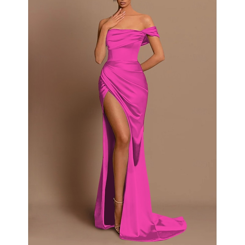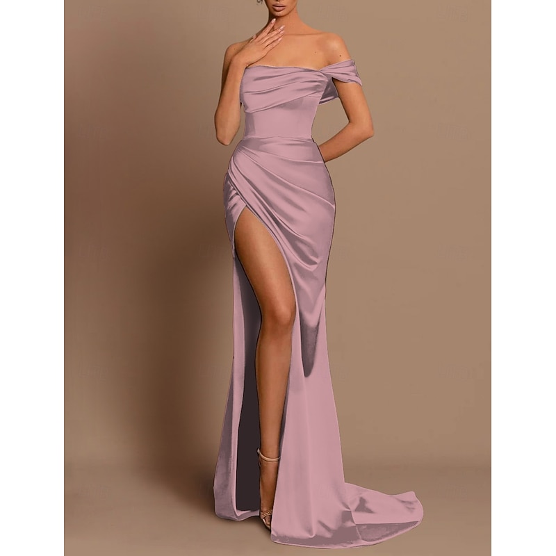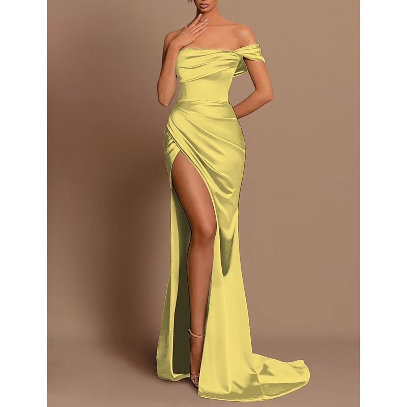HOT ! Beach Wedding Mermaid Evening Gown Sexy Dress Wedding Guest Holiday Court Train Sleeveless Off Shoulder Bridesmaid Dress Satin with Ruched Slit Masquerade Dress