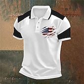 HOT ! American Independence Day Men's American US Flag Polo Shirts Button Up Polos Golf Shirt Short Sleeve Polo Shirts Lapel Fashion Casual Daily Festival Print Summer Black Red Khaki