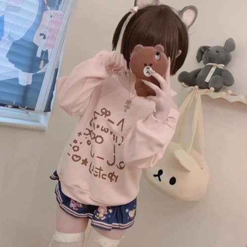 Kawaii Bow Cartoon Print Long Sleeve Off Shoulder Loose Sweatshirt Casual Fashion Y2K Tops 6