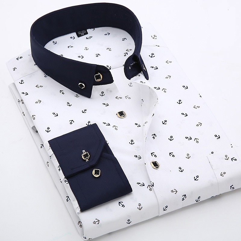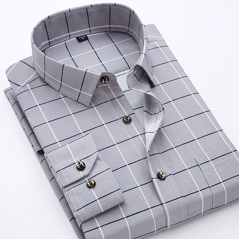 More information about Men's Dress Shirt Non Iron Shirt Stretch Plaid / Striped / Chevron / Round Wedding Office & Career Light Pink Light Blue Black White Turndown Spring & Summer All Seasons Clothing Apparel