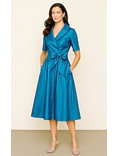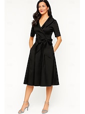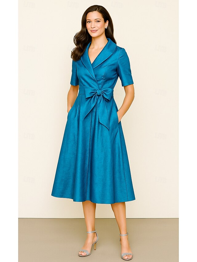 $129.99 - Tuxedo Dress A-Line Formal Wedding Wedding Guest Satin Elegant Vintage Short Sleeve Tea Length Shawl Lapel 2025. Shop for cheap Tuxedo Dresses online? Buy at lightinthebox.com on sale today!
