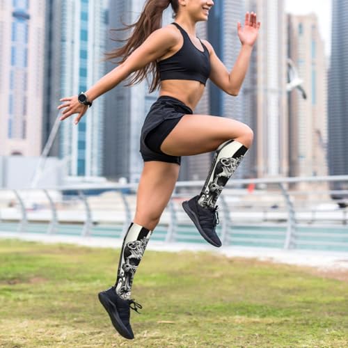 Stylish Skull Pattern Compression Sock For Men & Women With 15-20mmhg Pressure, Fashionable Knee High Compression Stocking 6