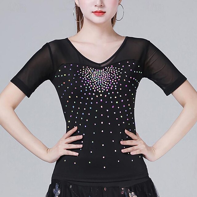 $40.99 - Latin Dance Ballroom Dance Top Pure Color Splicing Crystals / Rhinestones Women's Performance Training Short Sleeve High Terylene 2025. Shop for cheap Tops & Sets online? Buy at lightinthebox.com on sale today!