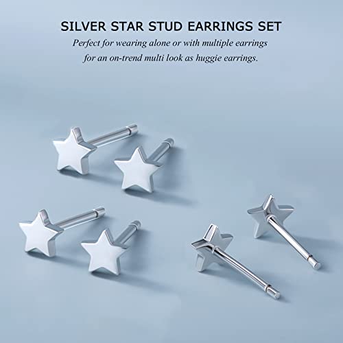 HOT ! 3 Pairs 925 Sterling Silver Star Stud Earrings for Women,Tiny Simple Geometric Stud Earrings Set Small Hypoallergenic Cartilage Tragus Ear Jewellery for Men (3/4/5mm)