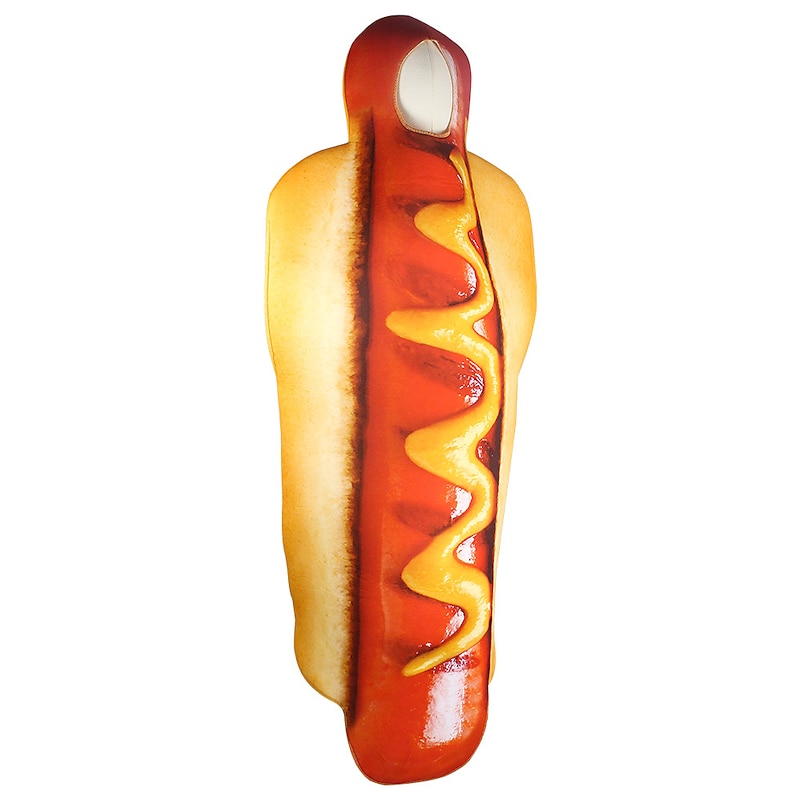 Highlights [Material:] Crafted from high-quality polyester fabric, this hot dog costume is lightweight, durable, and comfortable. The material is renowned for its wrinkle resistance and easy maintenance, ensuring you look your best with minimal effort. [Design and Fit:] Featuring a one-size-fits-most unisex fit, this costume offers a relaxed fit to comfortably accommodate various body sizes. It includes a hood that adds the "topping" effect to the ensemble, further enhancing the realistic hot dog appearance. [Design Highlights:] The costume boasts a quirky print of a hot dog nestled in a bun, with vibrant mustard and ketchup details for added humor. The pull-over design ensures ease of wear and removal, making it ideal for quick costume changes. [Occasions:] Perfect for Halloween, Mardi Gras, carnival festivities, or any themed party. This costume is designed to bring laughter and serve as a unique icebreaker at social gatherings, ensuring all eyes are on you. [Size Notice:] Available in a one-size-fits-most design, this costume is suitable for adults, with its generous sizing offering comfort and flexibility for both men and women.