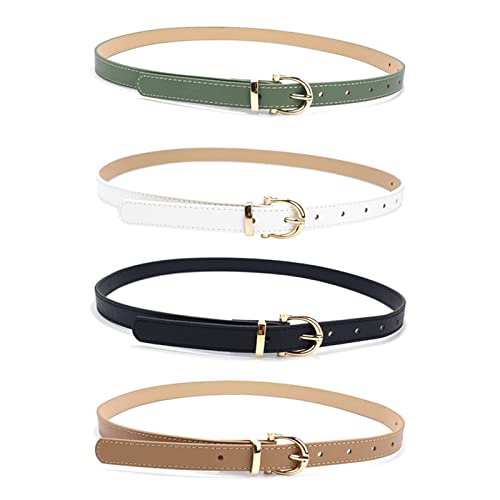 2 Pieces Women Belts with Metal Buckle Skinny Leather Belt Thin Waist Belt for for Jeans & Pans & Dress 4