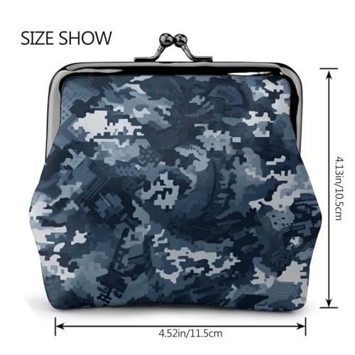 Pu Leather Buckle Coin Purse Camouflage-Print-Navy-Gray Girls Kiss-Lock Change Purse Wallets 2