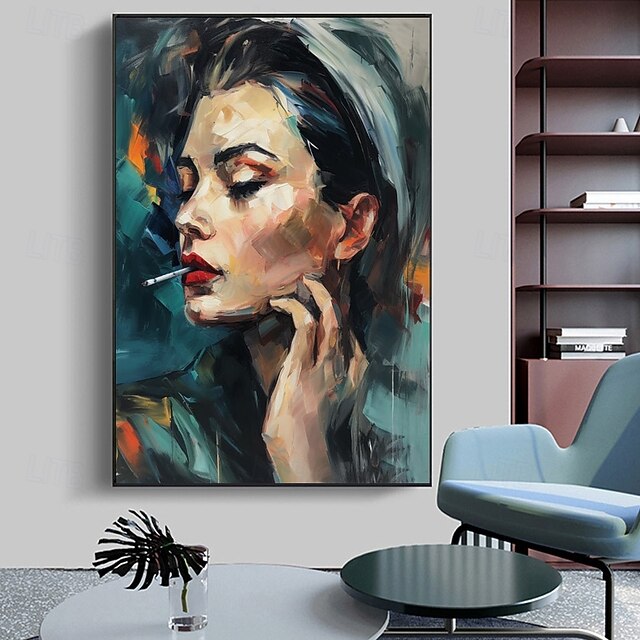 $154.99 - Hand painted Women Face Portrait Oil Painting Home Smoking girl Canvas Decorative Wall Art Pictures Cuadros For Living Room Bedroom Modern Rolled Canvas (No Frame) 2025. Shop for cheap People Paintings online? Buy at lightinthebox.com on sale today!
