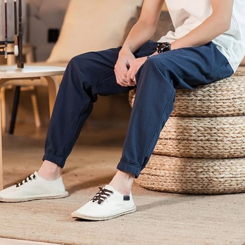 HOT ! Mens Casual Cotton Linen Pants Big and Tall Elastic Drawstring Waist Pant Loose Comfy Summer Beach Pants Cinch Bottom