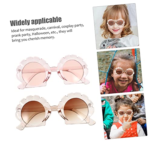 2 Pairs Vintage Baby Sunglasses Irregular Style Shell Mirror Shades UV Protection for Kids Stylish Travel Eyewear for Boys and Girls 3