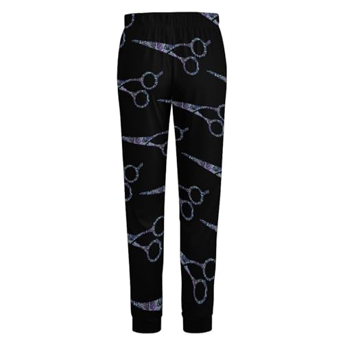 HOT ! Haircut Barber Scissors Purple Fire Tie-Dye Men's Pajama Bottoms Sleep Lounge Soft Comfy Pants Sleepwear