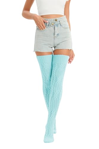 YELAIVP Women's Thigh High Socks Over Knee Cable Knit Boot Stockings Winter Long Warm Leg Warmers 6