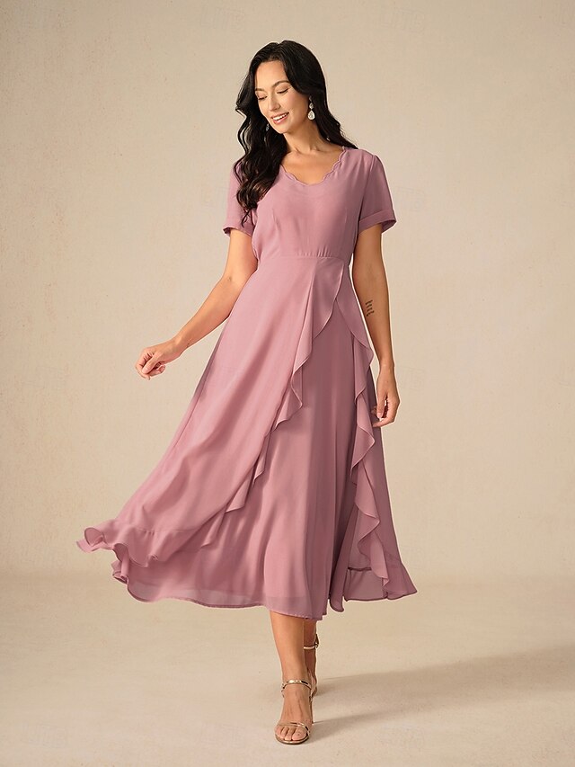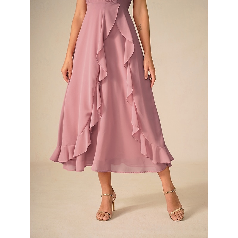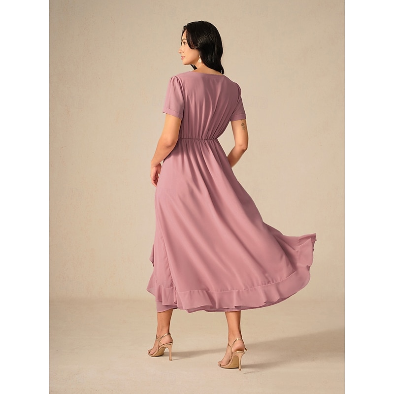 More information about Women's Maxi Dress A Line Dress Elegant Formal Wedding Wedding Guest Loose Fit Solid Color Short Sleeve Asymmetrical V Neck Blush Pink Summer Spring