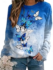 More information about Women's Pullover Sweatshirt Graphic Butterfly Fashion Casual Long Sleeve Round Neck Regular Tops Street Dailywear Casual Print Dark Pink Blue Green Spring Fall Winter