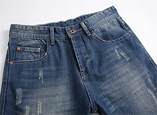Men's Retro Button Fly Jean Trousers Ripped Straight Denim Jeans Skinny Hole Distressed Stretch Denim Pants (36,Blue) 7