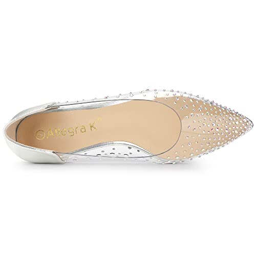 Allegra K Women's Pointed Toe Clear Rhinestone Ballet Flats 4