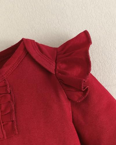 • Adorable 3-Piece Set: Includes a ruffle long-sleeve romper, matching headband, and snap-closure bodysuit for a stylish and coordinated look. Perfect for photos, special occasions, or everyday wear