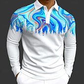 More information about Men's Abstract Geometic Polo Long Sleeve Polo Shirts Lapel Casual Athleisure Daily Wear 3D Print Buttons Spring Fall Winter Blue Orange