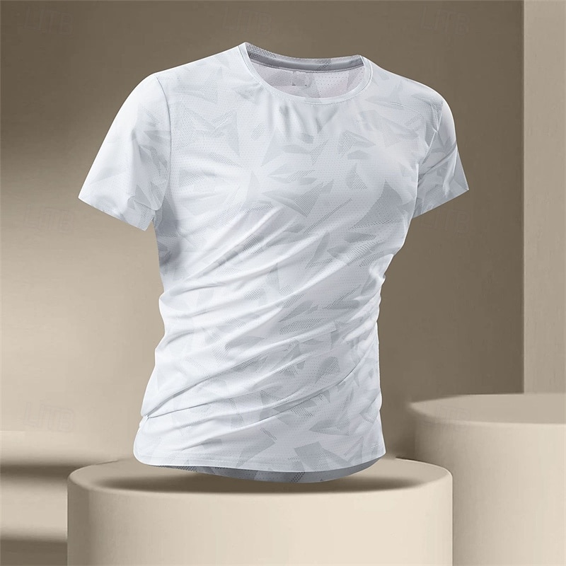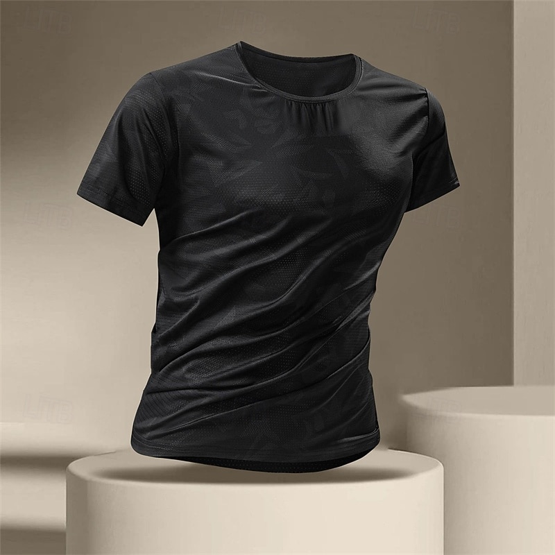 HOT ! Men's Gym Shirt Athletic Shirts Golf Shirt Crew Neck Short Sleeves Casual Daily Gym Quick dry Breathable Camouflage Black White Activewear Polyester Sport Outdoor
