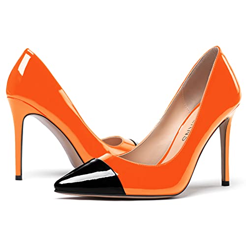 HOT ! WAYDERNS Women's Pointed Toe Slip On Patent Leather Patchwork Stiletto High Heel Pumps Wedding Dress Shoes 4 Inch