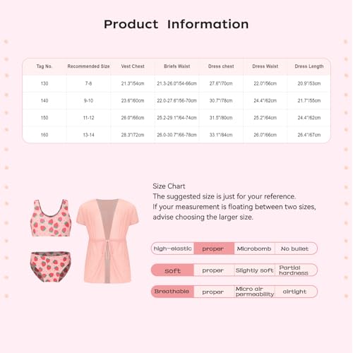 renvena Kids Girl 3 Piece Cover Up Swimsuit Cute Strawberry Print Swim Vest Kimono Set Rash Guard 7