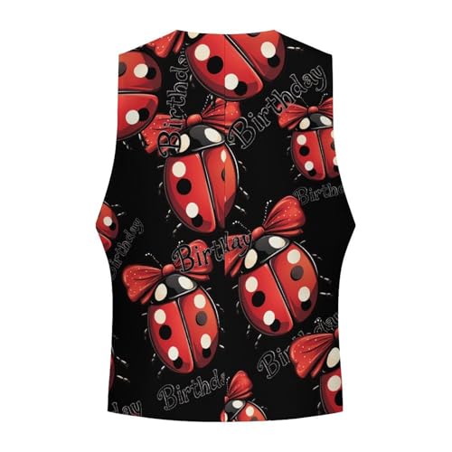 Birthday Lady Bug Men's Suit Vests Business Formal Dress Vest V-Neck Waistcoat for Wedding Casual 1