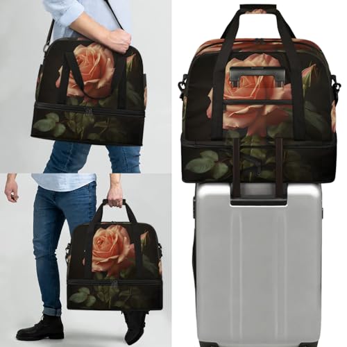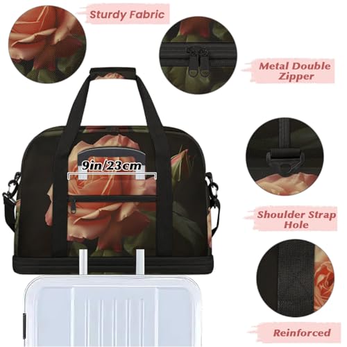 HOT ! Large Weekender Overnight Bags Pink Plant Rose Travel Duffel Bag for Women Men Gym Bag With Shoe Compartment Foldie Travel Tote Bag Carry On Personal Item Bag for Travel Gym Sports
