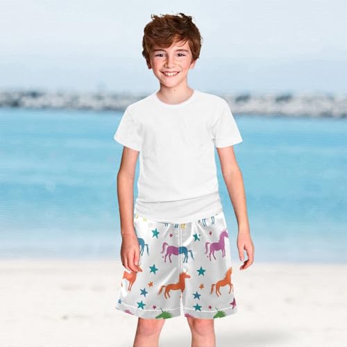 OREZI Boys Swim Trunk Colorful Unicorn Bathing Suit Swim Shorts for Toddler Kids Teens 2